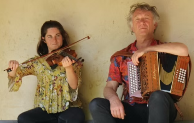 Ce duo de sud-ardèche réunit Quentin Boutignon (accordéon diatonique, bouzouki, pieds) et Jean-Daniel Talma (flûte traversière en bois, fifres, flûte à bourdon, caremére).